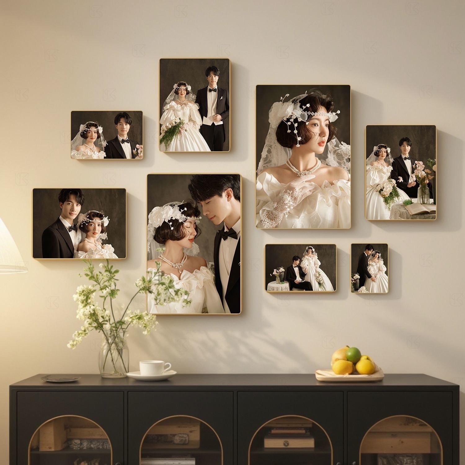 [Extremely Narrow Rounds] Modern Minimalist Art Photo Wall Combination – Bringing the Gallery into Your Home